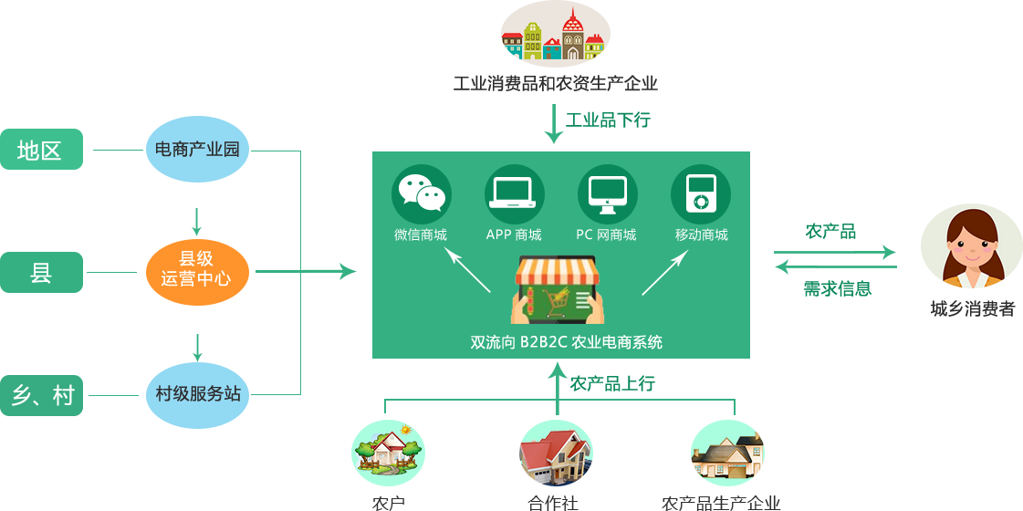 用了独特的双向O2O模式。首先;走进农村模式,为城市工业品走进农村,让农民买到安全、实惠的产品,提升农民的生活品质。
