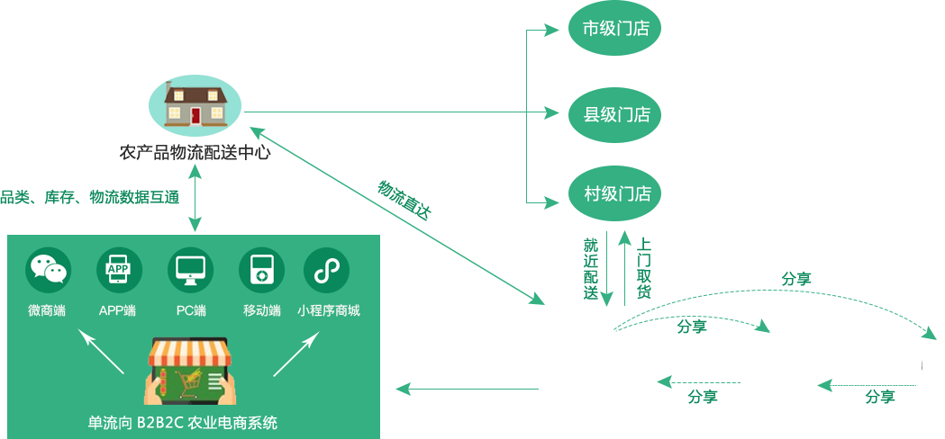 农村电商O2O解决方案依托多用户商城(B2B2C)系统,支持自营商家入驻模式迅速扩大