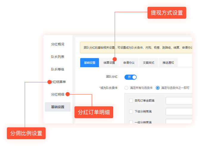 团队分红除了分销分佣外,可额外获得一定比例的团队分红